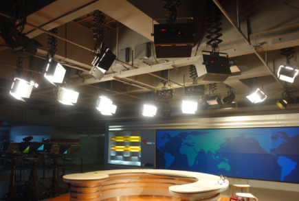 不僅僅只有演唱會(huì)、綜藝節(jié)目等演出形式需要有精美的舞臺(tái)設(shè)計(jì),就連新聞廣播演播室同樣需要大氣、美觀、端莊的現(xiàn)場(chǎng)布置環(huán)境。為了向電視機(jī)前的觀眾提供高質(zhì)量的新聞播報(bào)節(jié)目,電視臺(tái)演播室中使用了大量先進(jìn)的燈光設(shè)備作為基礎(chǔ),同時(shí)還特別使用了舞臺(tái)環(huán)鏈電動(dòng)葫蘆作為吊掛系統(tǒng)中的主要設(shè)備。