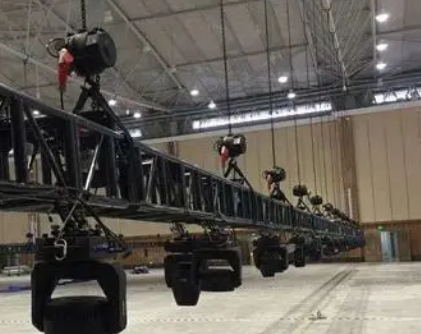 1、臺(tái)面骨架是常見的舞臺(tái)設(shè)備,屬于龐大構(gòu)件,需要同時(shí)使用多臺(tái)舞臺(tái)電動(dòng)葫蘆進(jìn)行吊裝,那么在吊裝時(shí),每臺(tái)電動(dòng)葫蘆的荷載能力都應(yīng)在骨架的重量之上。